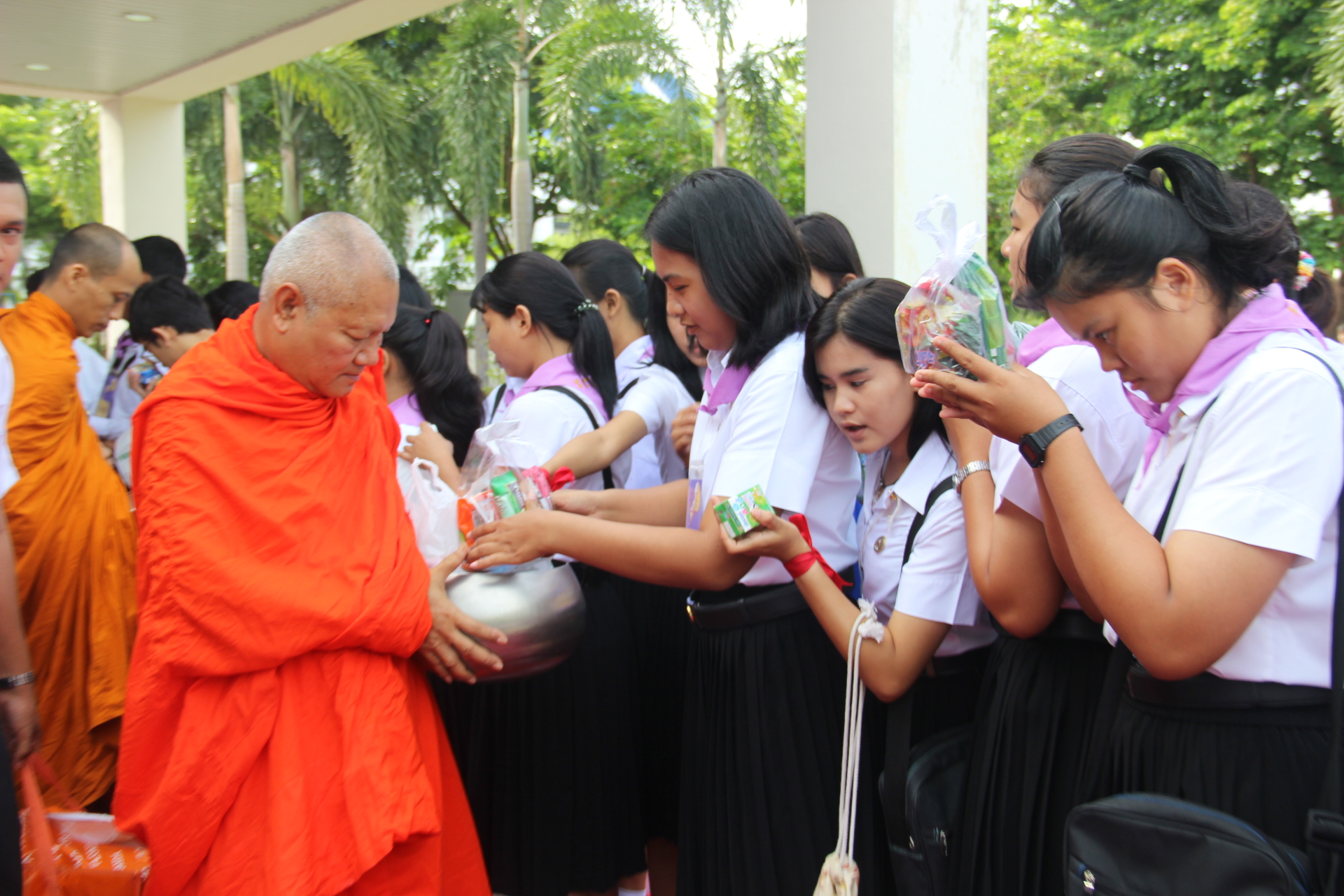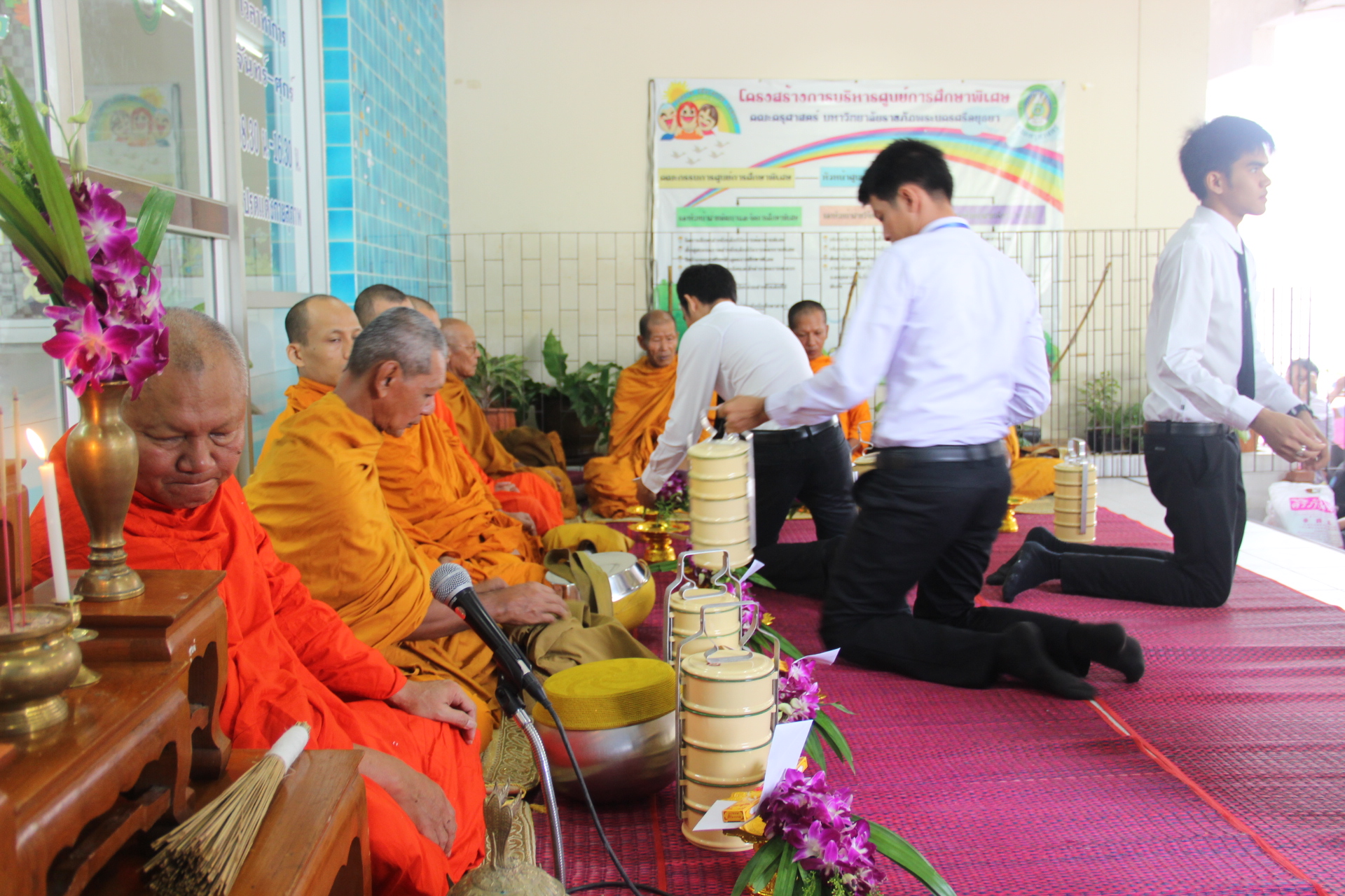 วันที่ 13 สิงหาคม 2558 คณะครุศาสตร์จัดกิจกรรมทำบุญตักบาตรพระสงฆ์เพื่อถวายเป็นพระราชกุศลแด่สมเด็จพระนางเจ้าฯพระบรมราชินีนาถเนื่องในโอกาสมหามงคลเฉลิมพระชนมพรรษา 83 พรรษา และการสืบสานวัฒนธรรมชาวพุทธ ณ บริเวณหน้าอาคารศูนย์การศึกษาพิเศษ นำโดย ดร.สุภัทรา คงเรือง รองคณบดีฝ่ายพัฒนานักศึกษาและโรงเรียนสาธิต พร้อมด้วยคณาจารย์ เจ้าหน้าที่และนักศึกษาคณะครุศาสตร์ ร่วมกันตักบาตรอาหารแห้งแด่พระสงฆ์วัดธรรมิกราช